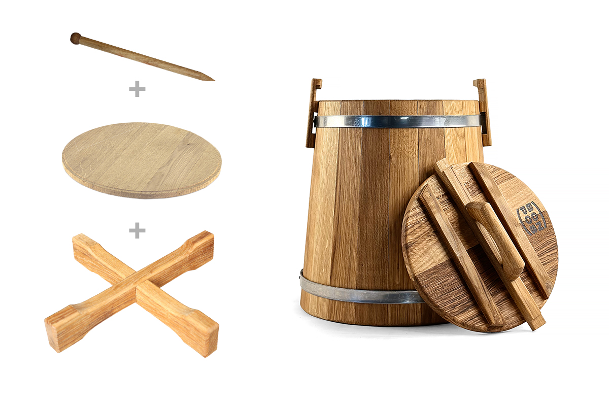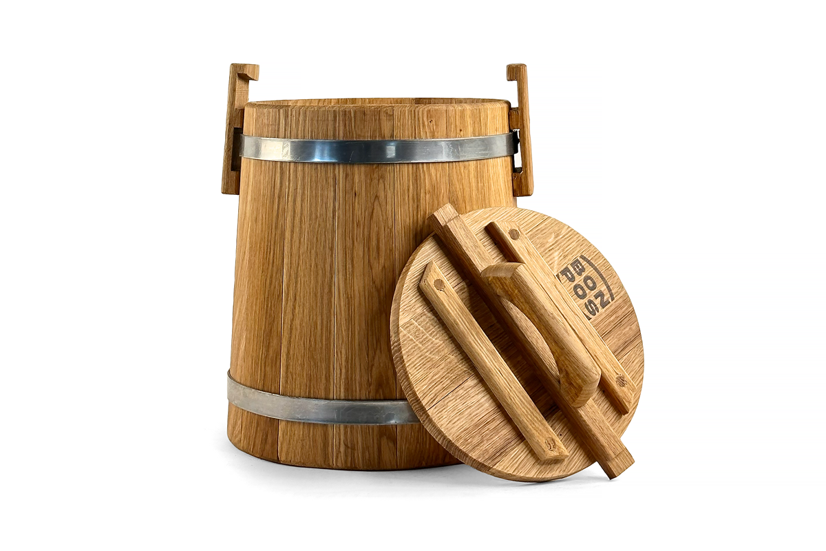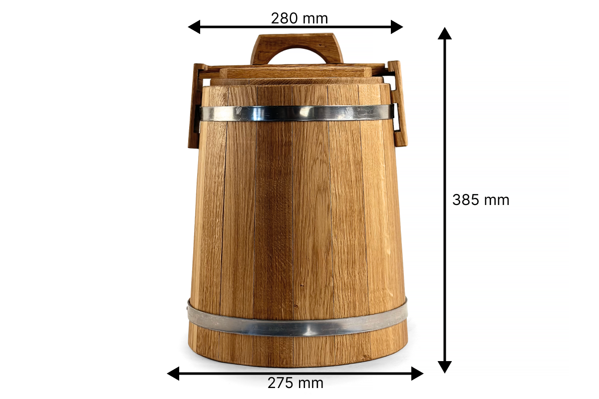 Dubová nádoba o objemu 10 litrů je ideální pro solení a nakládání různých druhů potravin – zeleniny, hub, masa, ryb i lesních plodů.