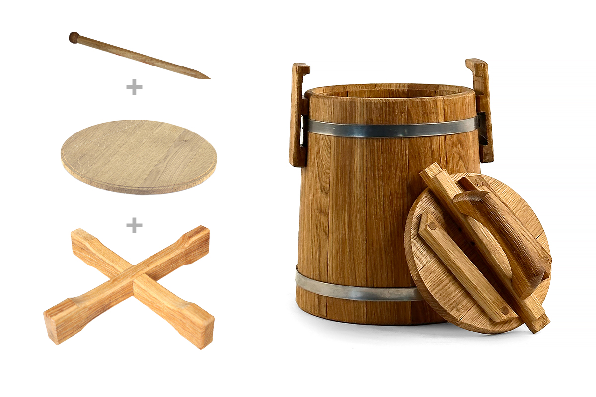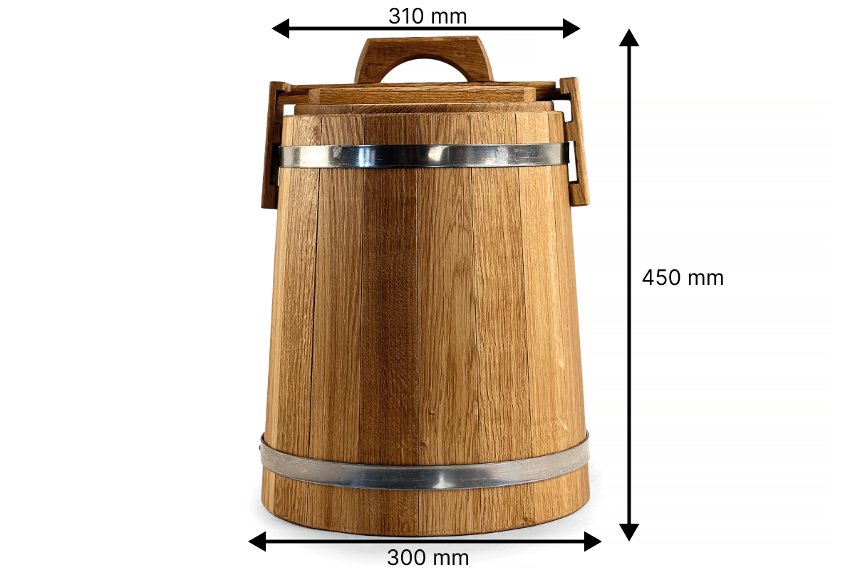 Objevte kouzlo tradičního konzervování s dubovou kádí o objemu 15 litrů, ideální pro solení zeleniny, hub, masa, ryb nebo lesních plodů.