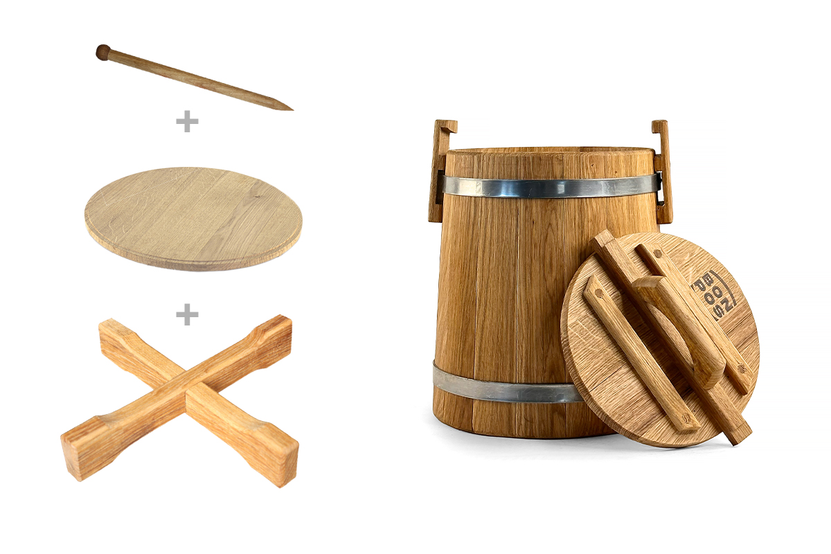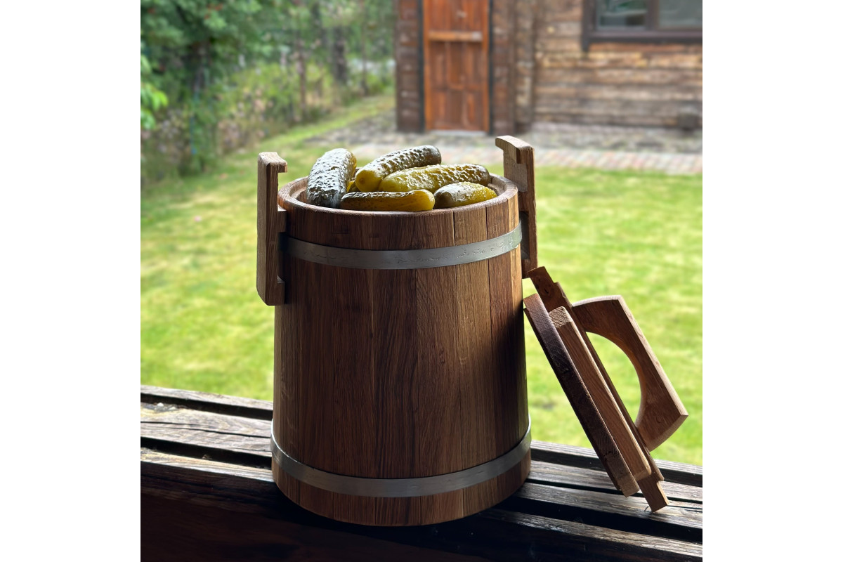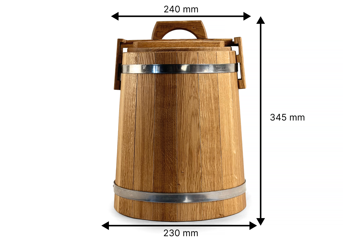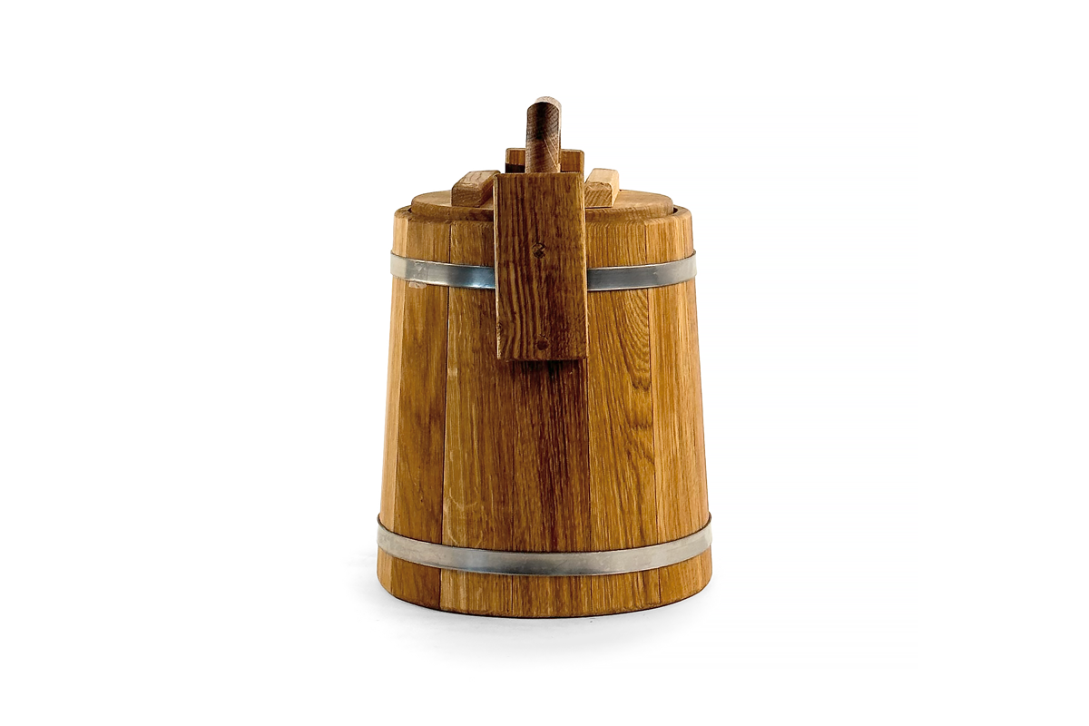 Dubová káď o objemu 5 litrů je ideální volbou pro solení a nakládání menšího množství zeleniny, hub, masa, ryb či lesních plodů.