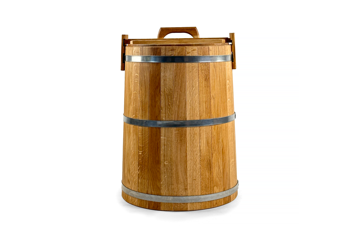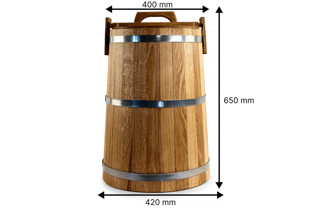 Každá nádoba je ručně vyrobena z pečlivě vybraného, přirozeně vysušeného dubového dřeva a ošetřena přírodním olejem pro maximální odolnost a dlouhou životnost.