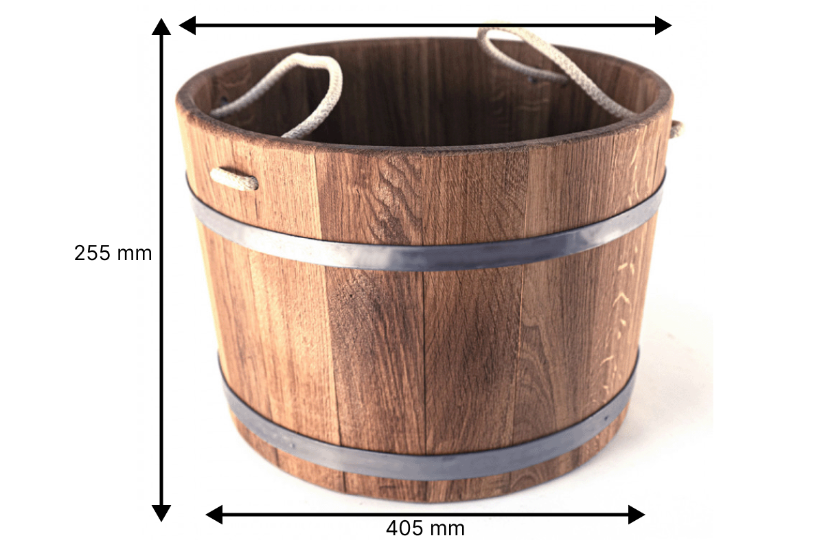 Náš dubový džber o objemu 23 litrů s lanovými uchy je skvělým pomocníkem pro pohodlné přenášení a skladování vody v sauně.