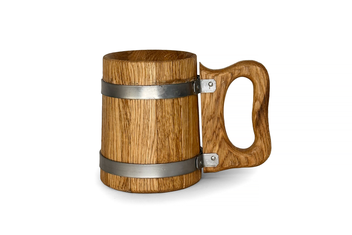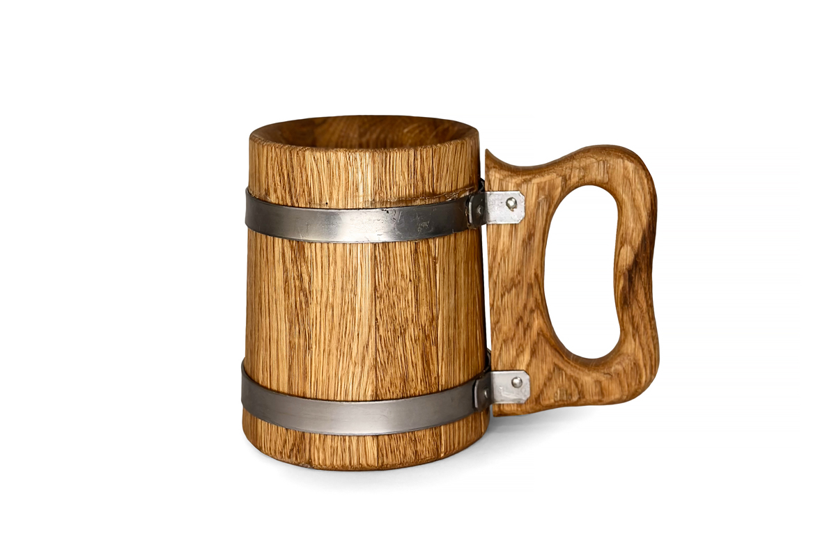 Dřevěný hrnek 0,5 l z dubového dřeva – Ideální pro pivo a studené nápoje