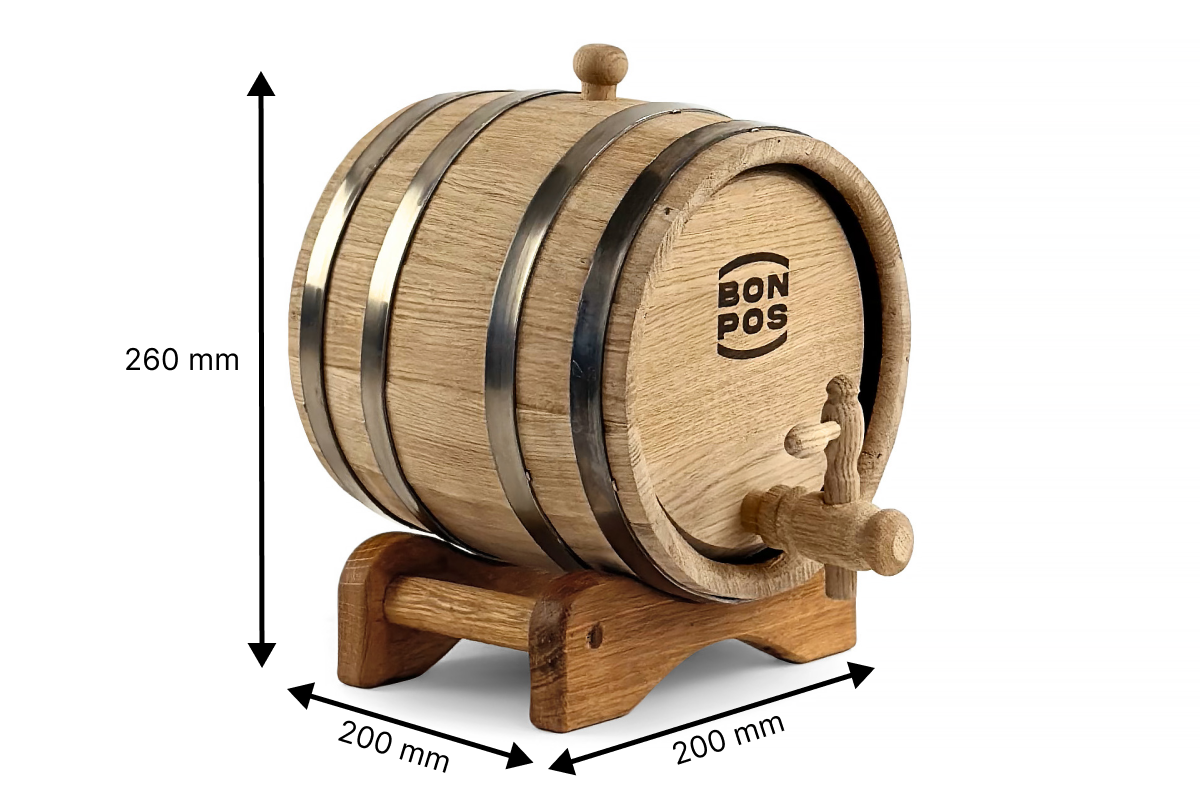 Vyrobený z prvotřídního dubového dřeva, které zaručuje perfektní zrání a bohatou chuť vašich nápojů.