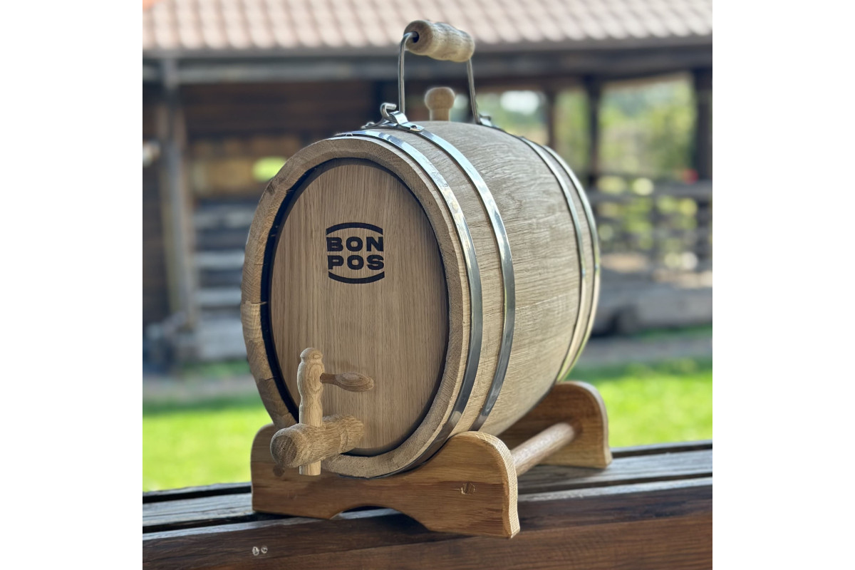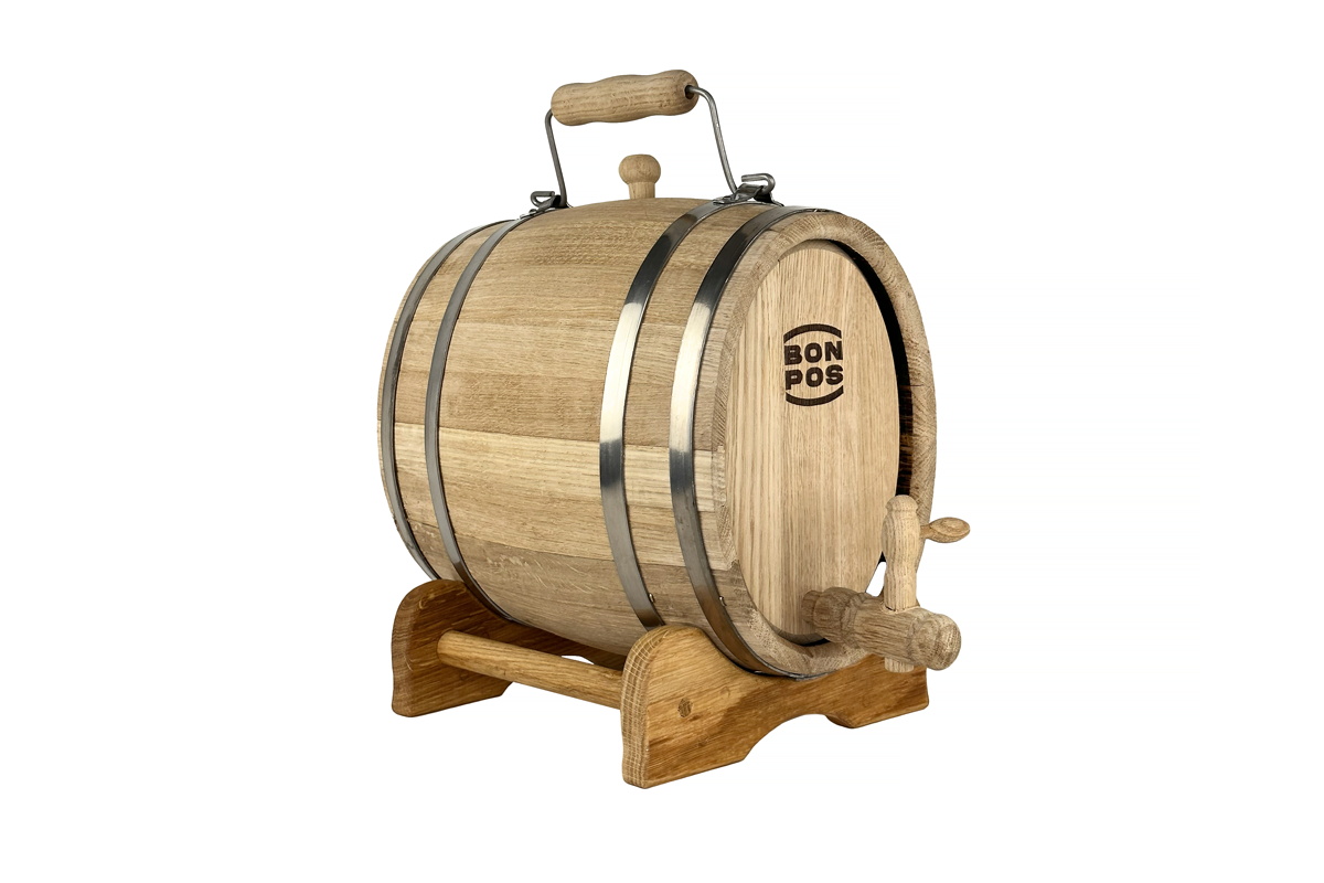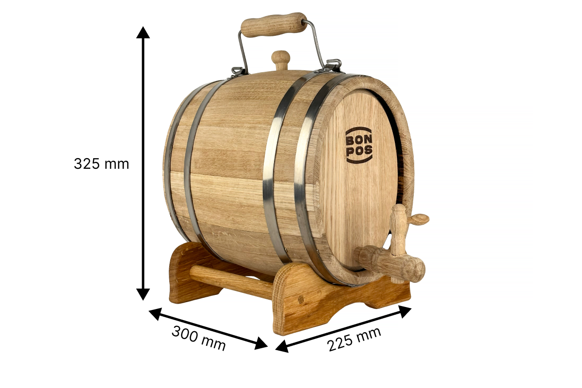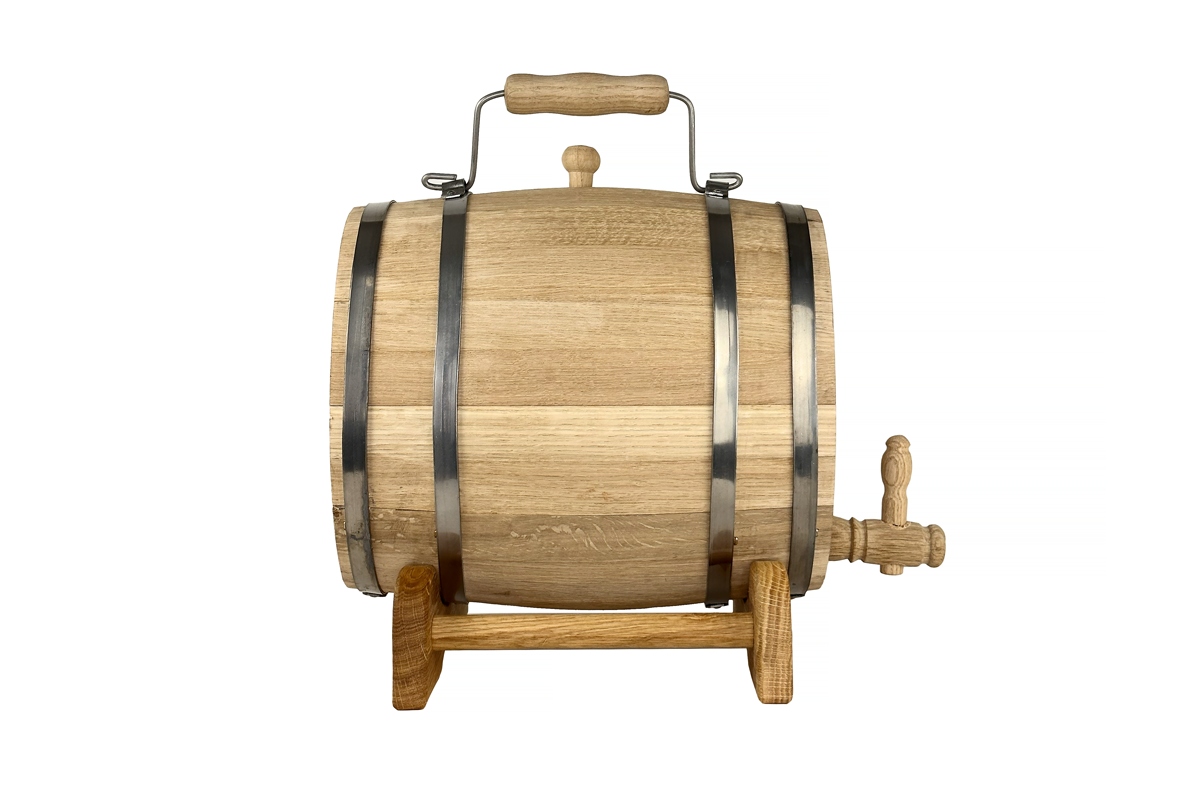 Objednejte si dubový sud 7 L s rukojetí a dopřejte si domácí výrobu nápojů v tradičním řemeslném duchu!