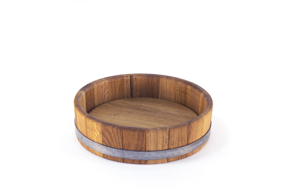 Dřevěný dubový podnos Ø 270 mm – stylový doplněk pro servírování nápojů a drobného pohoštění